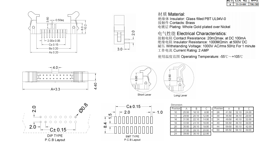 牛角 2x20P 彎針90度 2.00mm數(shù)據(jù)手冊PDF下載
