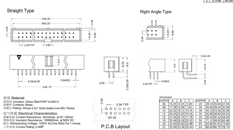 簡(jiǎn)牛 2*17p 彎針90度 2.54mm數(shù)據(jù)手冊(cè)PDF下載