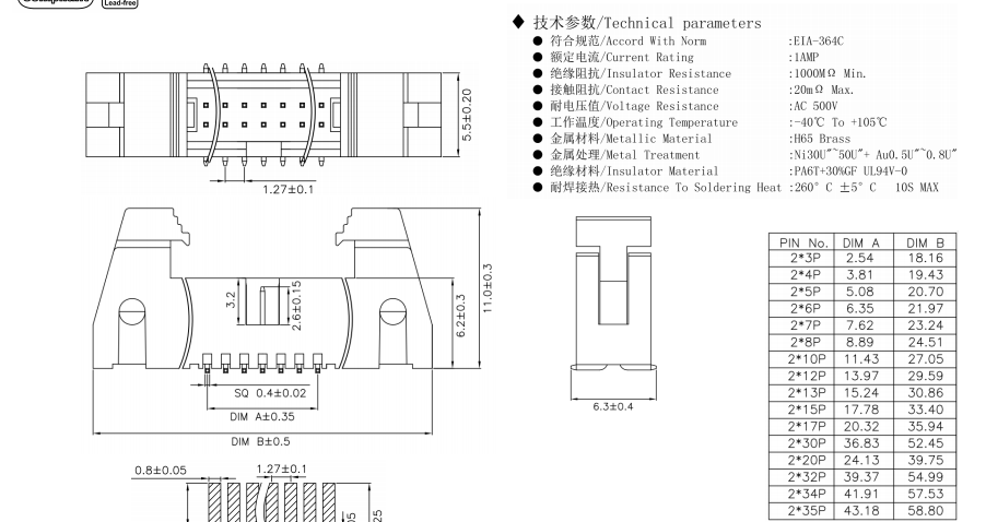 牛角 2*10P 貼片式 1.27mm數(shù)據(jù)手冊PDF下載