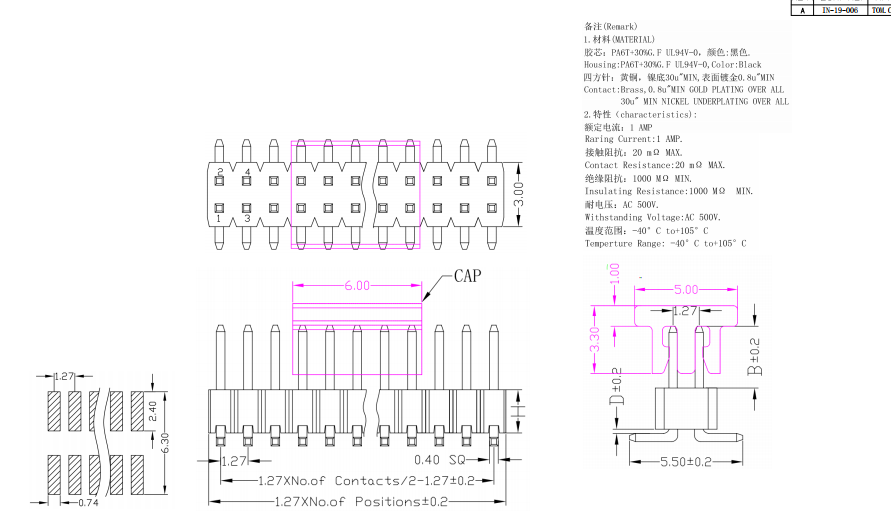 排針 單塑 2*10P 間距1.27mm 貼片式數(shù)據(jù)手冊(cè)PDF下載