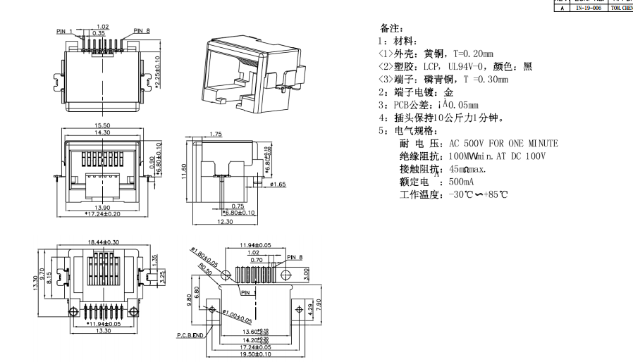 RJ45-8P8C-沉板-屏蔽-8pin–(RJ45-56-31) -F -SMD數(shù)據(jù)手冊PDF下載