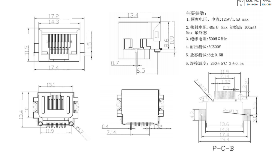 RJ45-8P8C-沉板-屏蔽-8pin–(RJ45-56-31) -F -SMD數(shù)據(jù)手冊PDF下載