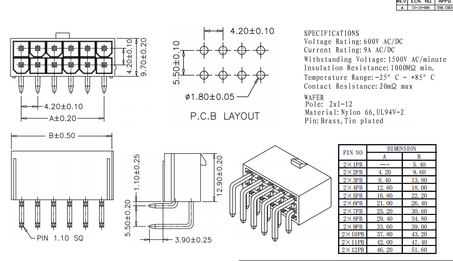 針座 2*6P 間距4.2mm 90度彎針 鍍金2U數(shù)據(jù)手冊(cè)PDF下載