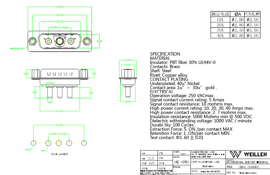 3V3 公 直焊板式 (20A),外露8.0 ,全金,前鉚5.8空心螺母,鍍錫數(shù)據(jù)手冊PDF下載