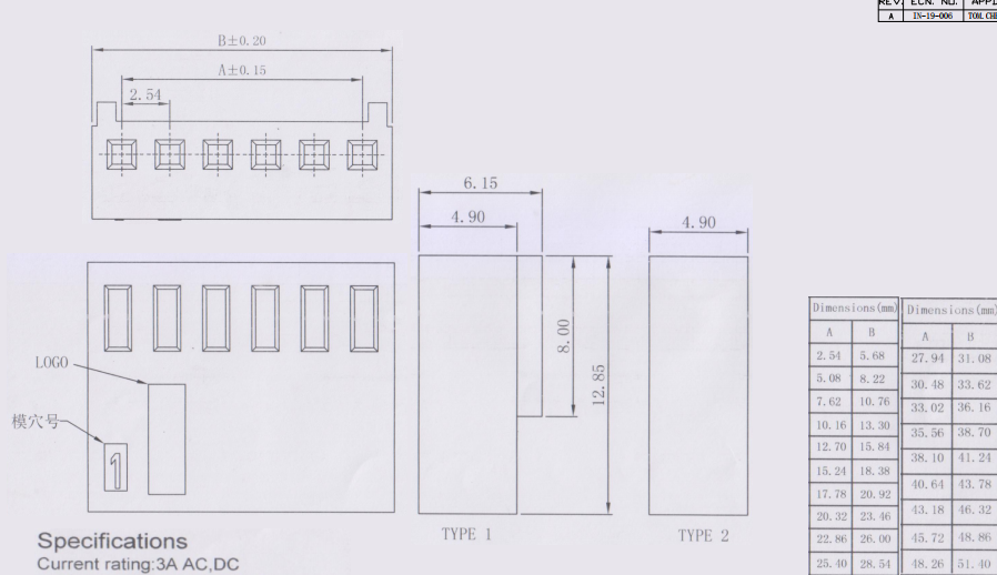 膠殼 1*5P 間距2.54mm 數(shù)據(jù)手冊(cè)PDF下載