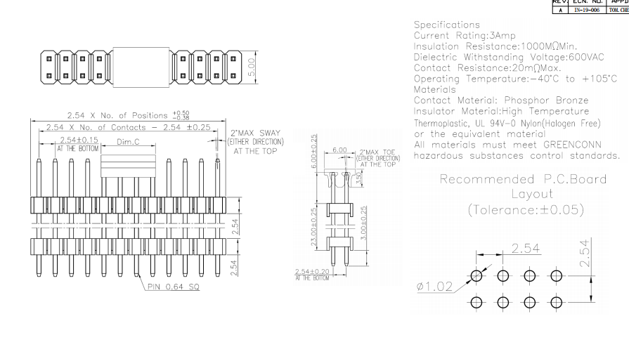 2*16P 2.54mm HEADER DUAL ROWS DIP TYPE CONNECTOR數(shù)據(jù)手冊(cè)PDF下載