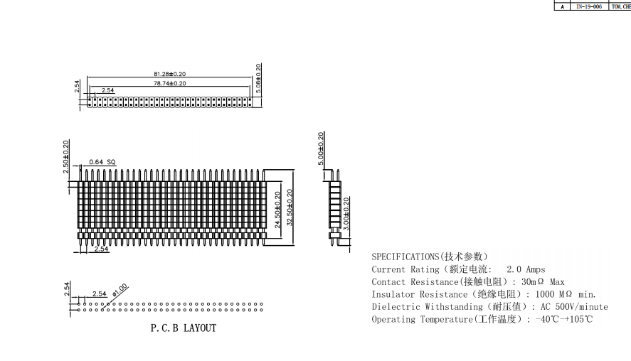 排針 2*32P 間距2.54mm 針高32.5mm 9連塑數(shù)據(jù)手冊PDF下載