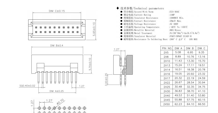 簡(jiǎn)牛 2*Np 直插針180度 1.27mm數(shù)據(jù)手冊(cè)PDF下載