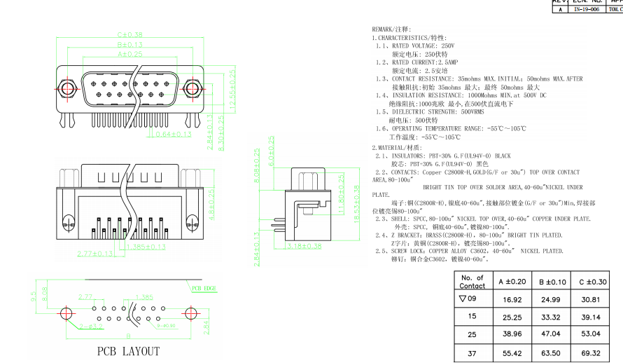 DR 9P 公 彎焊板8.08mm 鉚魚叉鎖4-40UNC*4.8螺絲數據手冊PDF下載