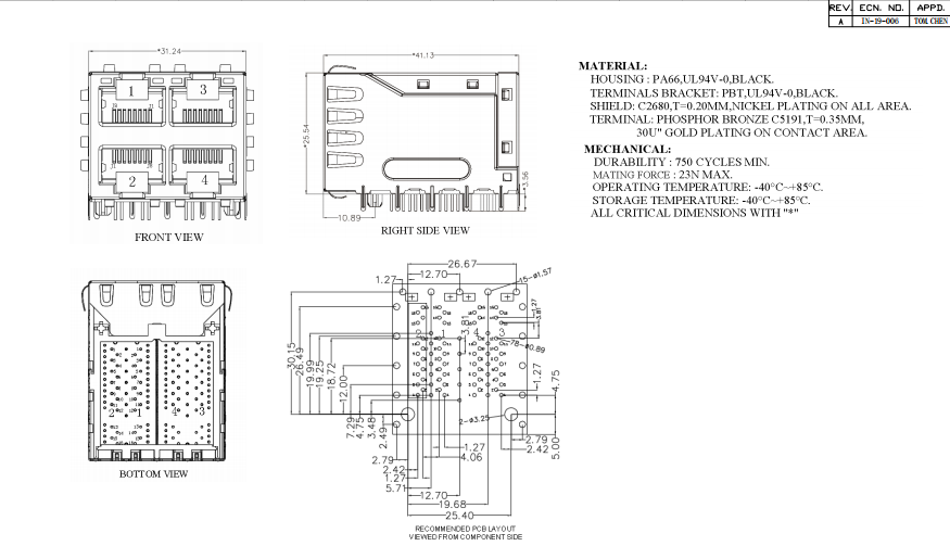 RJ45 帶網(wǎng)絡(luò)變壓器 2*2 90度 10G bast 帶彈片數(shù)據(jù)手冊(cè)PDF下載