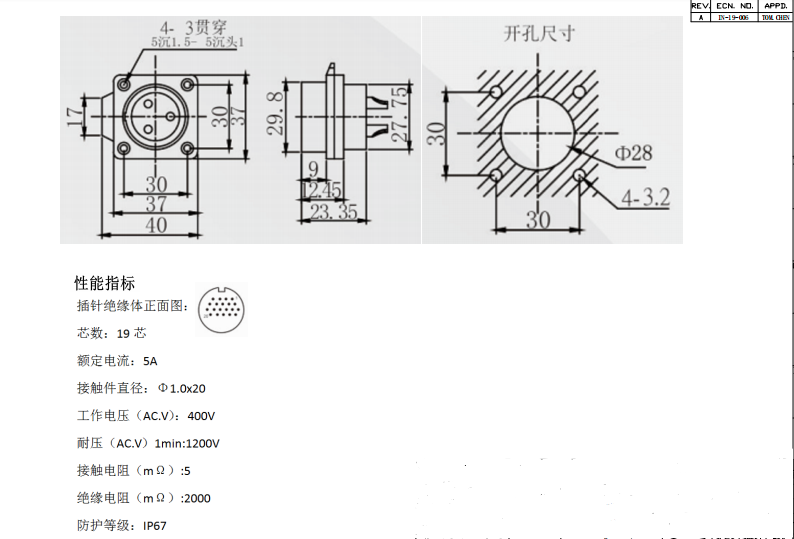 圓形連接器 19PIN 母插座(使用空1PIN)數(shù)據(jù)手冊PDF下載