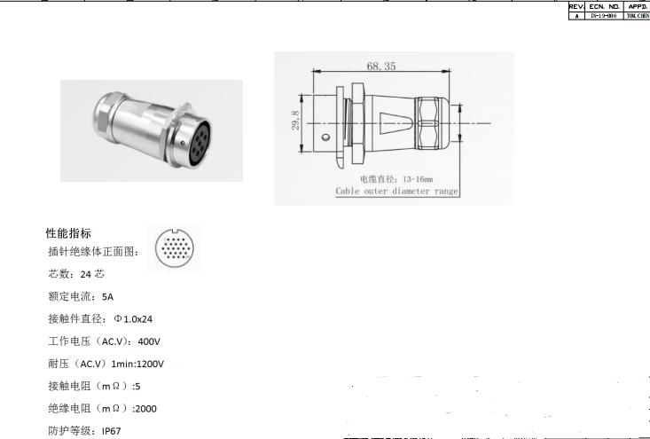 圓形連接器 24PIN 母插座(帶尾)數(shù)據(jù)手冊PDF下載