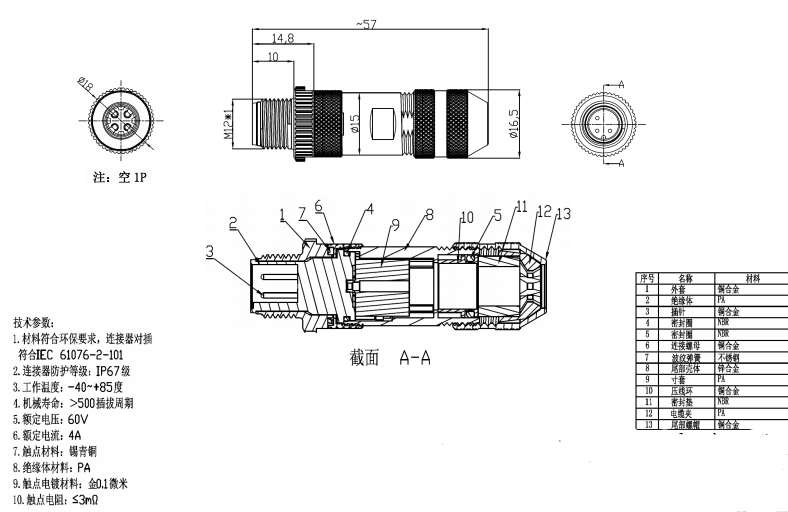 M12 3P A-CODING 公端壓接型組裝式連接器數(shù)據(jù)手冊PDF下載