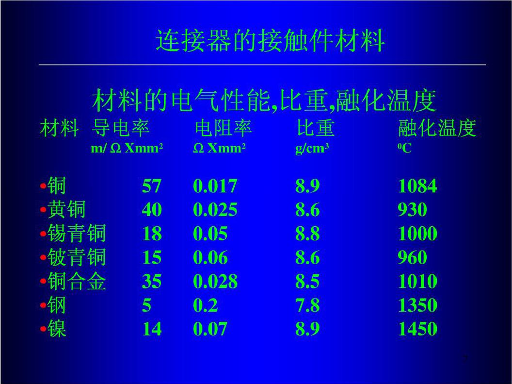 連接器接觸件常用材料