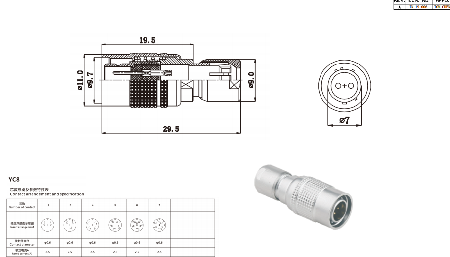 YC8 4芯 直式短公插頭數(shù)據(jù)手冊PDF下載